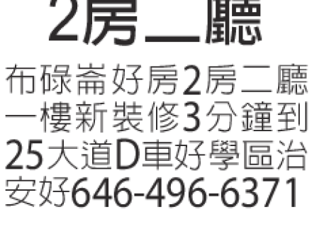 兩房兩廳租 646-496-6371
