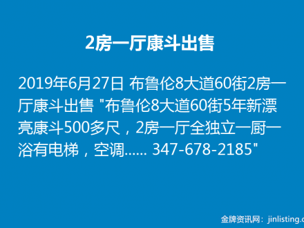 2房一厅康斗出售 347-678-2185