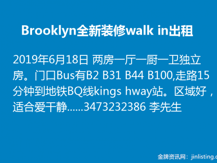 Brooklyn全新装修walk in出租 3473232386