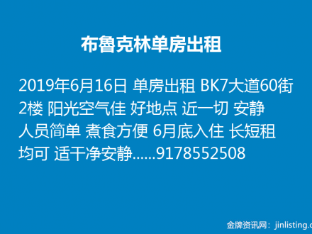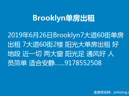 Brooklyn单房出租 9178552508