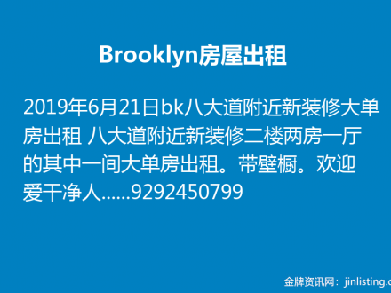 Brooklyn房屋出租 9292450799