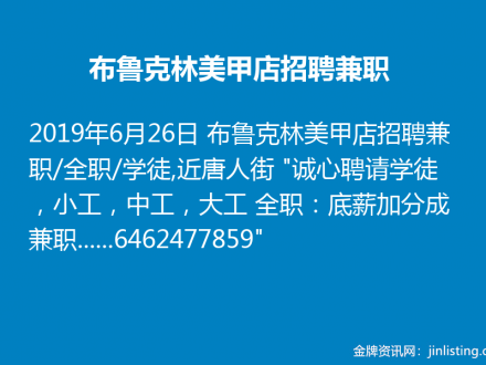 布鲁克林美甲店招聘兼职 6462477859