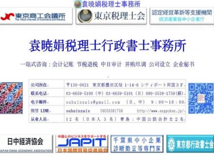 • 袁晓娟税理士事务所/03-6659-5101/日中税务会计合同会社/会计记账/企业设立