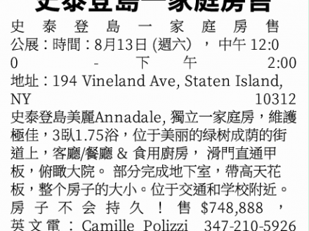 史泰登島一家庭房售