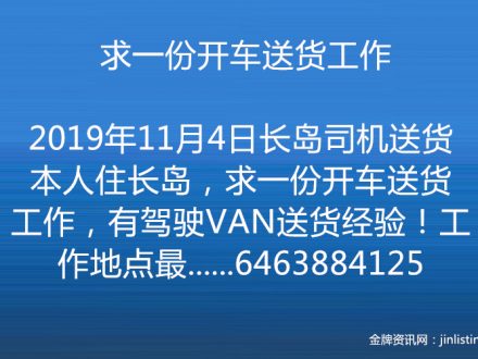 求一份开车送货工作 6463884125
