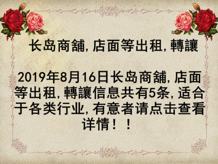 长岛商舖,店面等出租,轉讓