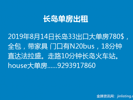 长岛单房出租 9293917860