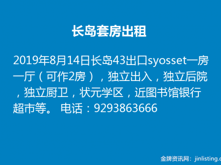 长岛套房出租 9293863666
