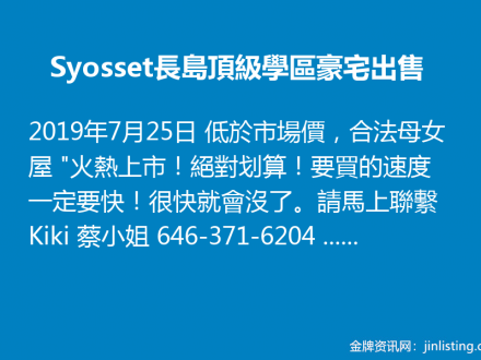 Syosset長島頂級學區豪宅出售 646-371-6204