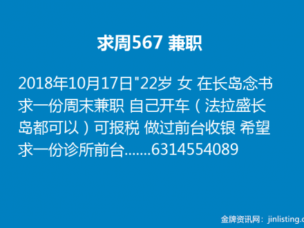 求周567 兼职631-455-4089
