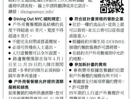 紐約市永久性戶外用餐區計畫 申請截止日期: 8月3日