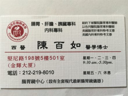 專科醫師 陈百如医学博士212-219-8010 紐約下城醫院腸胃專科醫師