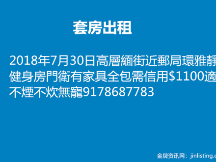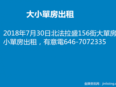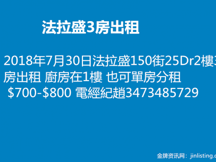 8月1日法拉盛8条出租信息汇总 联系 646 318 3389 佣金可议