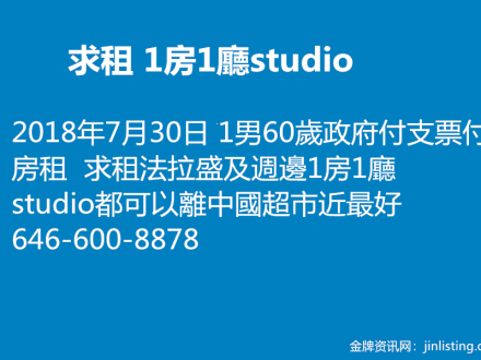 求租法拉盛及週邊1房1廳或studio 646-600-8878