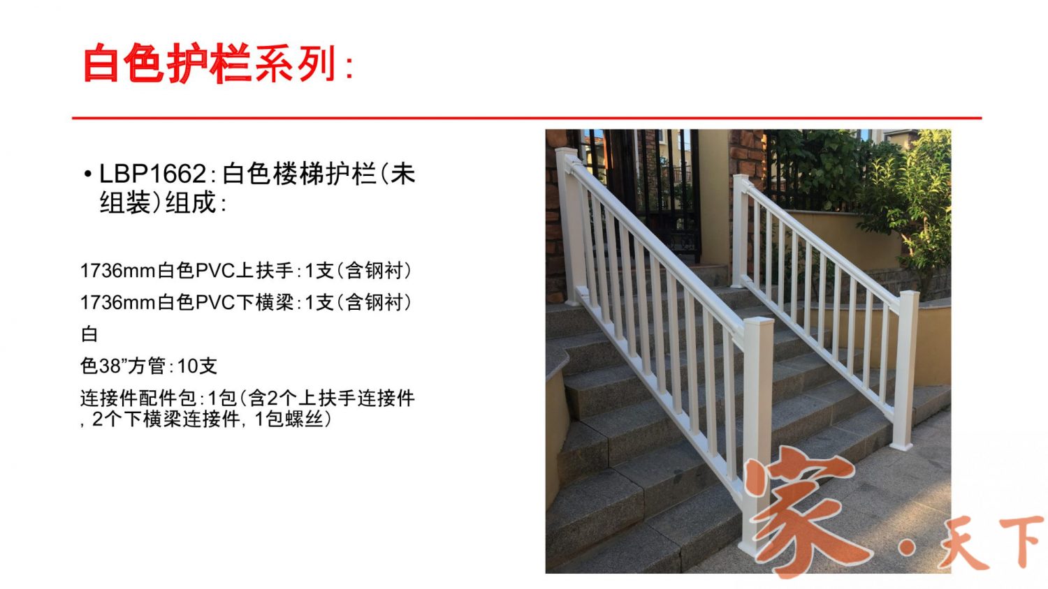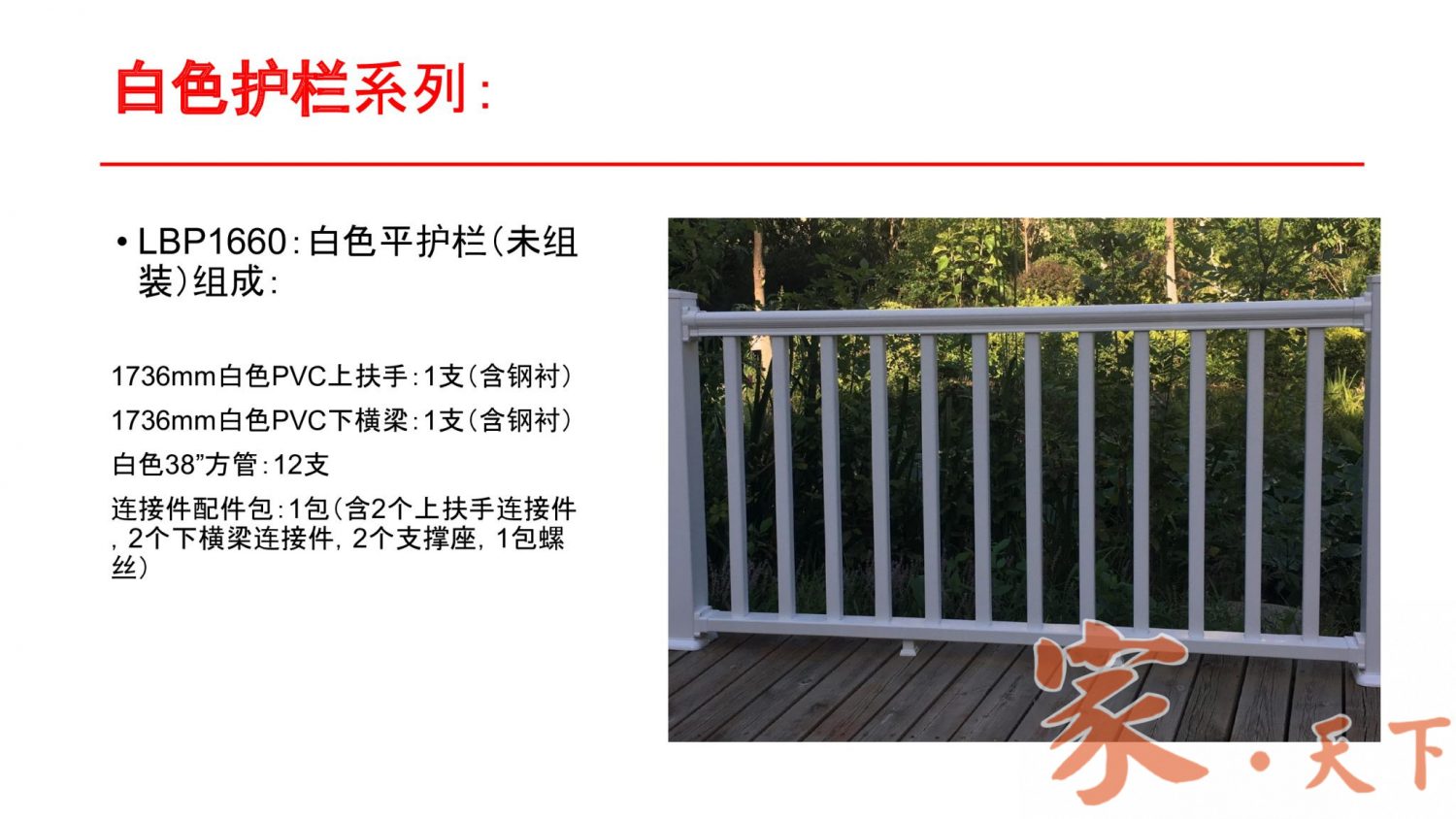 ◉ 维护简单,用水冲洗恢复如新,不需象实木围栏那样每隔一段时间需要刷一次油漆。