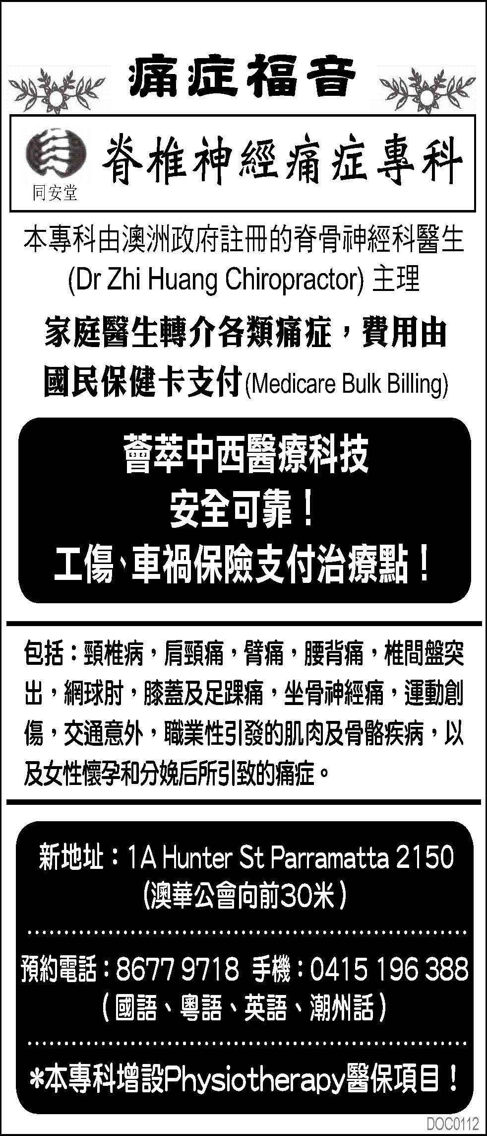 同安堂 02 8677 9718; 0415 196 388...