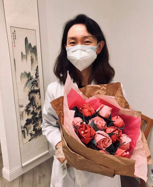 孙医师手捧患者献花